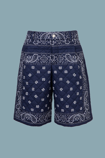 Bermuda unisex realizzato in cotone 100% , trapuntato con ovatta 100 gr riciclata, foderato con tessuto in cotone stampato a righe.