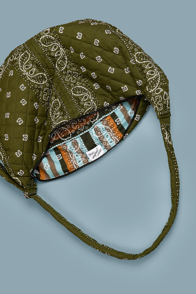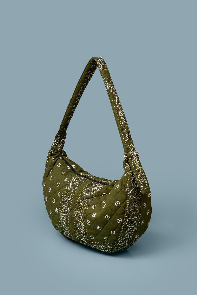 Borsa Hobo stampa Bandana, in cotone 100% realizzata unendo insieme foulard bandana trapuntati con ovatta 100 gr riciclata , foderata in cotone stampato riga bandana .