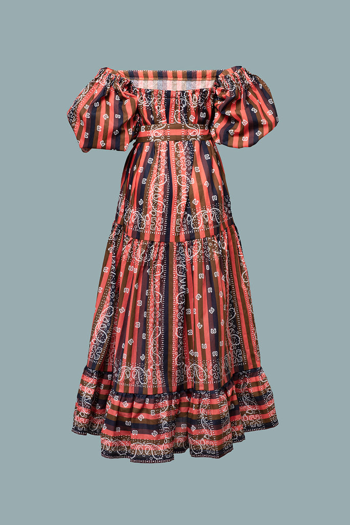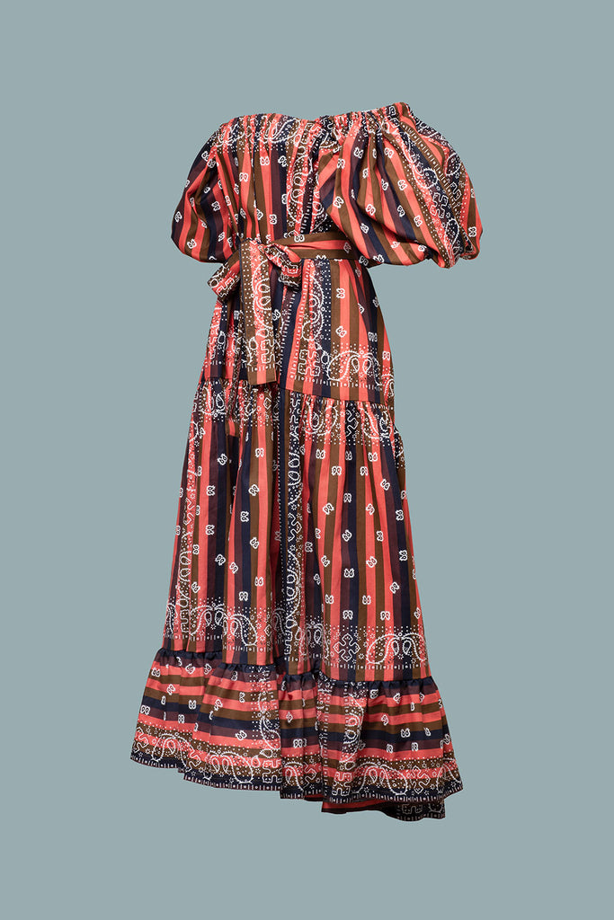 Abito Bandana righe Corallo