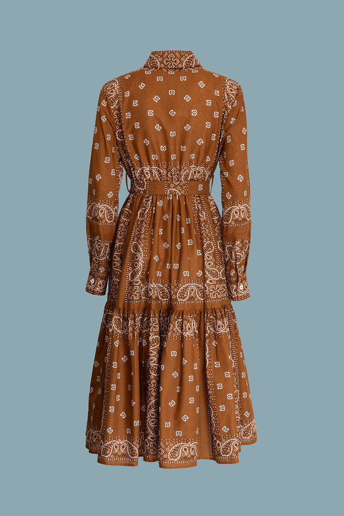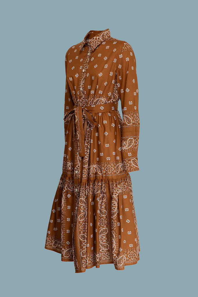 Abito chemisier in cotone 100% , realizzato dall’unione di svariati foulards bandana . Interamente prodotto in Italia è una creazione esclusiva di Madame Pauline Vintage.