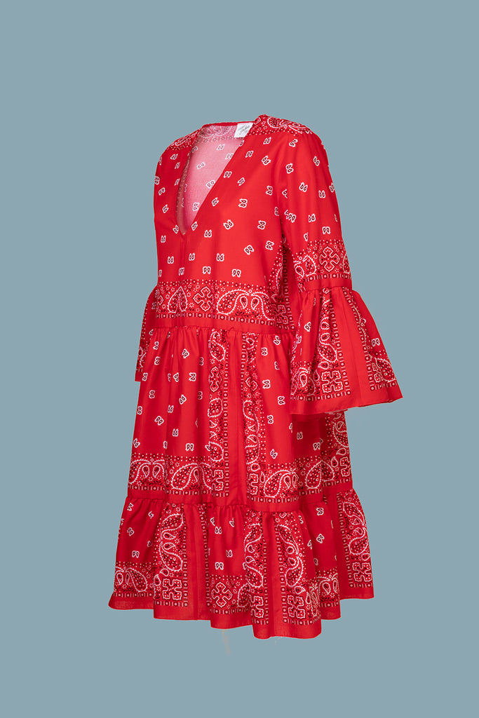 L’abito bandana in cotone 100% è realizzato dall’unione di svariati foulard bandana . Interamente prodotto in Italia è una creazione esclusiva di Madame Pauline Vintage. La versatilità dell’abito è adatto per ogni occasione, può essere indossato anche con un cintura o abbinato ad un pantalone.La vestibilità é taglia unica e veste dalla taglia 38 alla 50.Capo molto femminile grazie alla linea ad A, alla manica svasata e alla scollatura a V.