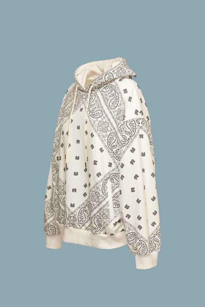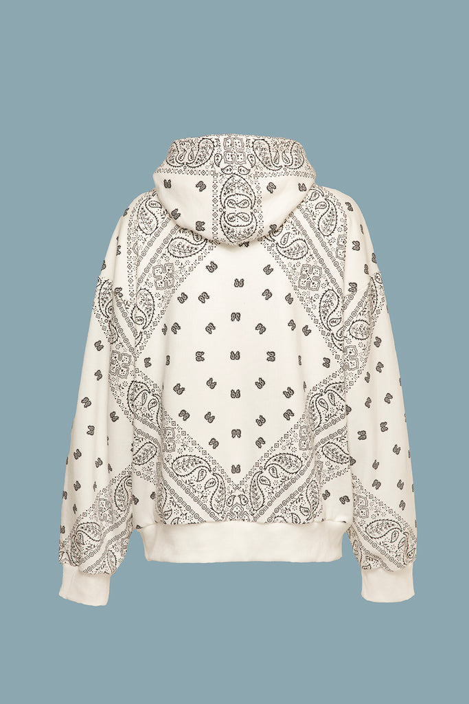 Felpa con cappuccio e tasche lavateli .Unisex in puro cotone dall'iconica stampa bandana, interamente prodotto in Italia è una creazione esclusiva di Madame Pauline Vintage.