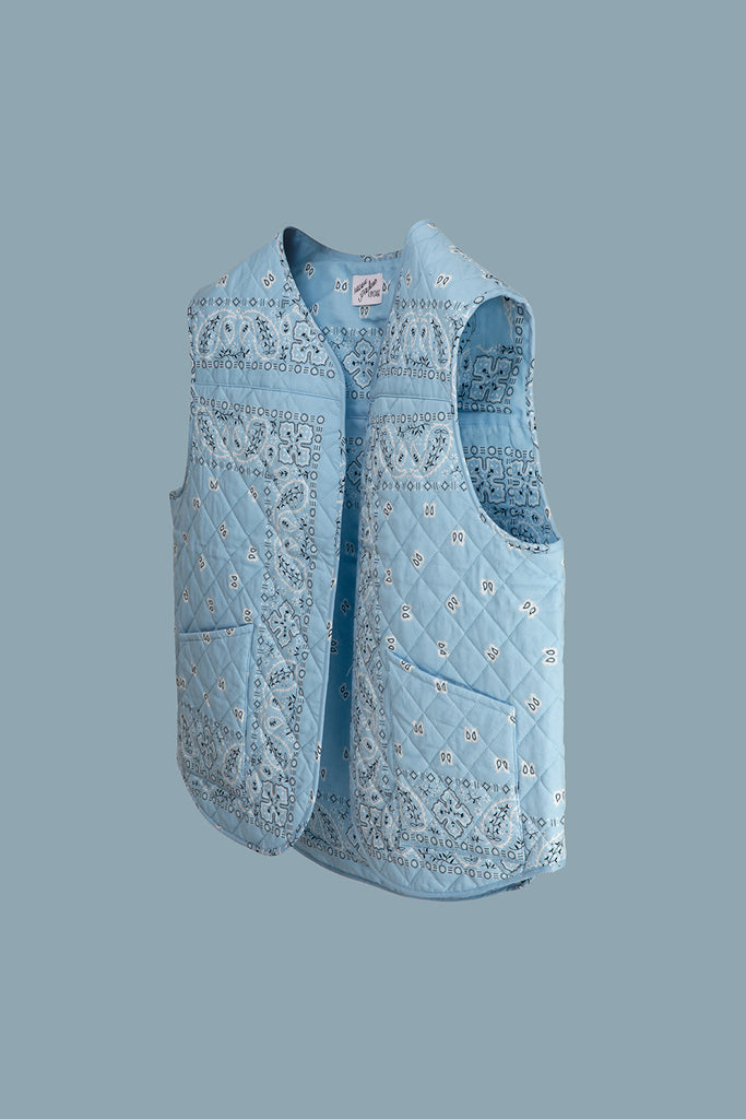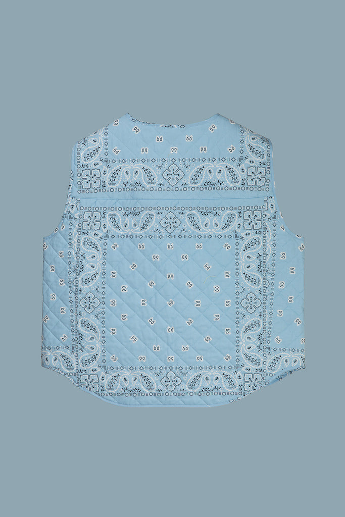 Gilet stampa Bandana, in cotone 100% realizzata unendo insieme foulard bandana trapuntati , regala un caldo tepore ,può essere usata come capo per la primavera o sotto i capospalla nei mesi più rigidi. Ha un imbottitura 100 gr in poliestere riciclato.É una creazione esclusiva Madame Pauline Vintage