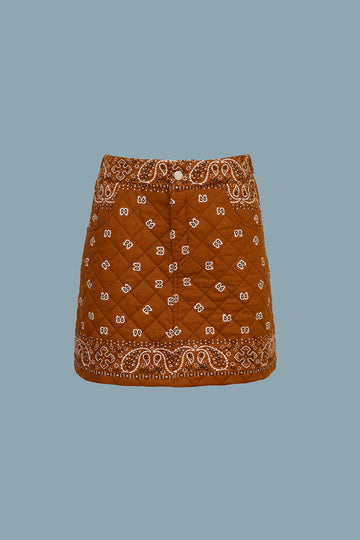 Minigonna realizzata in cotone 100% , trapuntato con ovatta 100 gr riciclata, e foderata con lo stesso tessuto in cotone stampato