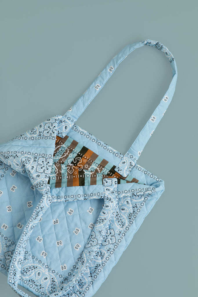 Shopper in 100%cotone trapuntato e doppiata con stampa interna a contrasto.