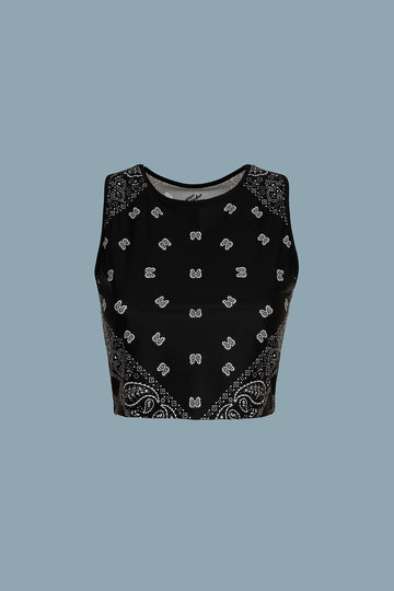 Top Madame Pauline Vintage, realizzato con il tessuto in lycra 100% riciclato di Carvico azienda leader per qualità.